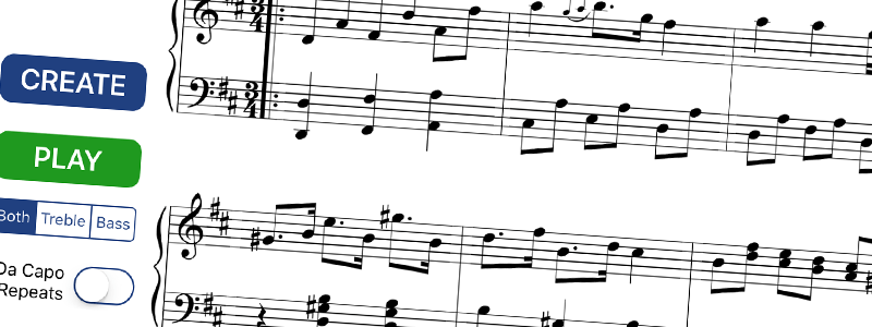 Create a minuet and trio with a touch of a button. If you like what the app creates, share a pdf of the music via email or print it out to play again later as often as you wish.