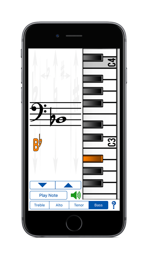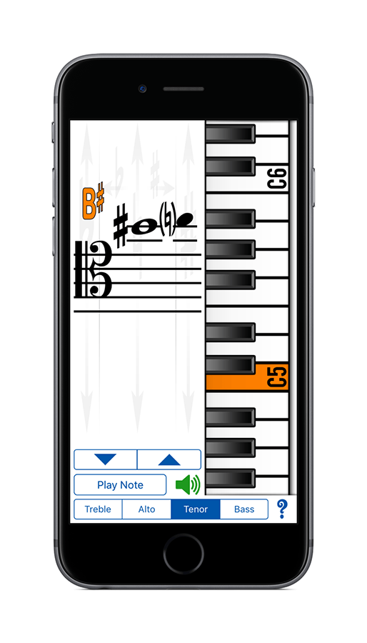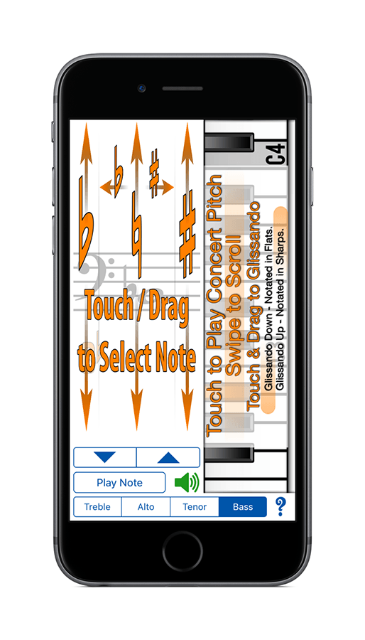 On the iPhone, use the and Buttons to move chromatically up and down without touching the music staff or piano keyboard.